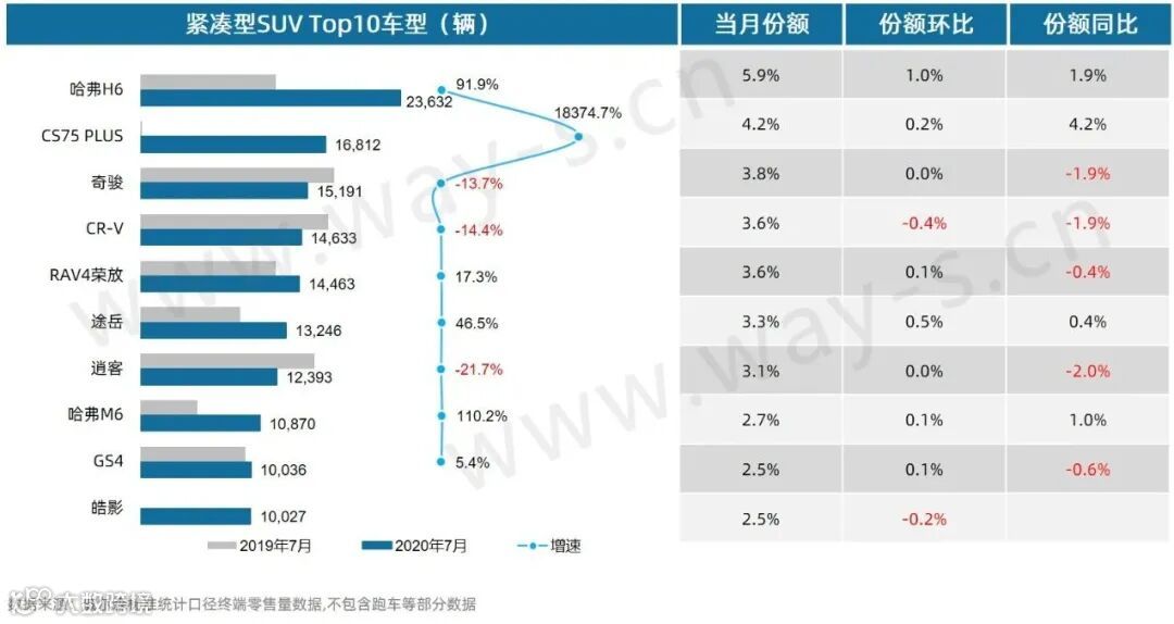 紧凑型SUV市场TOP10车型销量表现