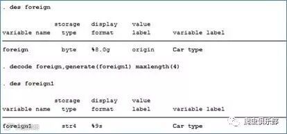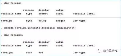 decode foreign,generate(foreign1) maxlength(4) //新变量foreign的字节长度为4