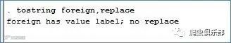 可以发现,因为foreign中含有value label而不能转变,此时,我们删除value label,看看结果如何!