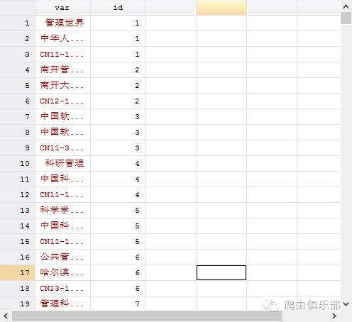 首先我们删去不需要的字符串观测值,并为每种期刊生成id,便于期刊名称、主办单位和CN号提取出来后能一一对应。