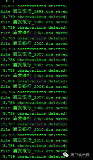 这样就把2016年的数据拆分并保存下来了。但是,命令运行完之后,我们其他的数据被deleted掉了,无法继续保存其他年股票的数据了。这时候preserve,restore就可以大显身手,由于年份从1999到2016太多,我们将preserve,restore写入小循环中就可以省去一遍又一遍的keep if,得到每一年的数据。命令如下:
