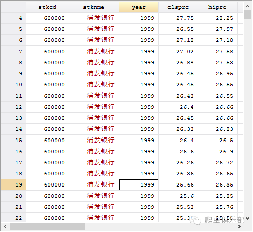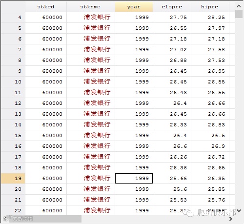 preserve,restore是最基础却最好用的命令,它可以满足我们对数据进行多次不同处理的需求。试想我们将其写入循环,我们就可以对一个数据文件进行足够多的数据处理达到我们的目的。比如我们想将cntrade所下载的浦发银行股票数据按照按照年份拆分保存,首先我们用cntrade命令下载浦发银行数据并生成年份: