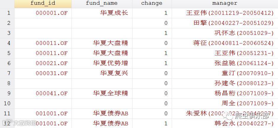 我们如果要进行事件研究,我们需要得到一个基金经理变更的事件列表。也就是说,在这个列表中,每一个经理变更作为数据的一个行。即下方所示数据: