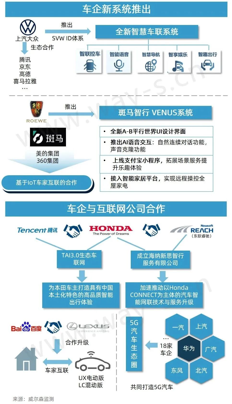 车企持续加强与互联网公司合作,促进产品迭代升级,并注重车联网生态圈的构建,为消费者提供多场景出行体验。