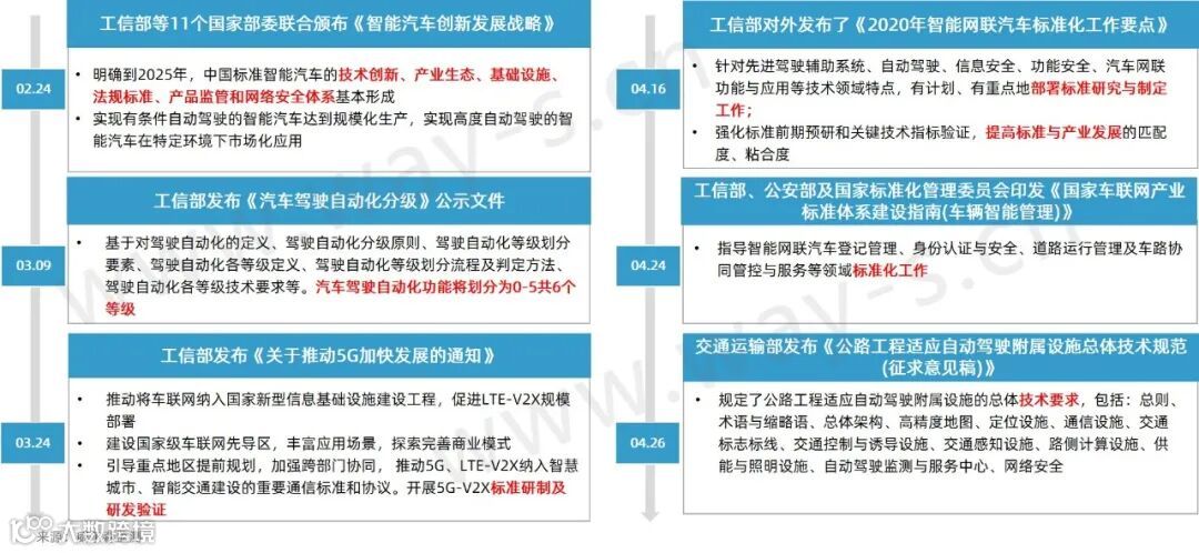 2020年以来国家相关部门纷纷出台指导文件,全面推动车联网产业技术研发和标准制定,5G及车联网协同发展。