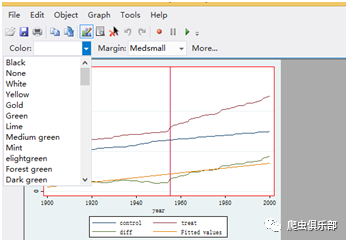 通过Stata程序生成一组随机数,然后将其排序再生成年份变量从1900——2000年,其中数据前55个数据是一个规律后56个数据则进行变换生成方式,以此模拟在1955年发生一次冲击并作为实验组,最后将数据按year排序保存到D:\爬虫俱乐部/temp,replace