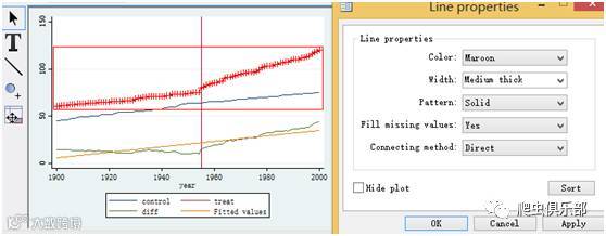 针对上述例子在1955年加一个参考线,使用xline()命令