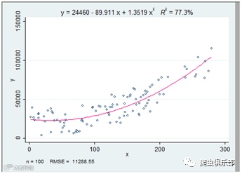 gen y=x^2+x+10+runiform(1,40000)