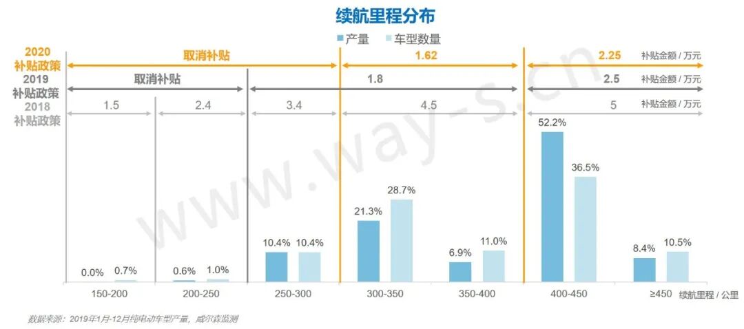 据威尔森监测,2019年250km-300km之间车型占比约为10%,由此来看此次调整影响的范围并不大。