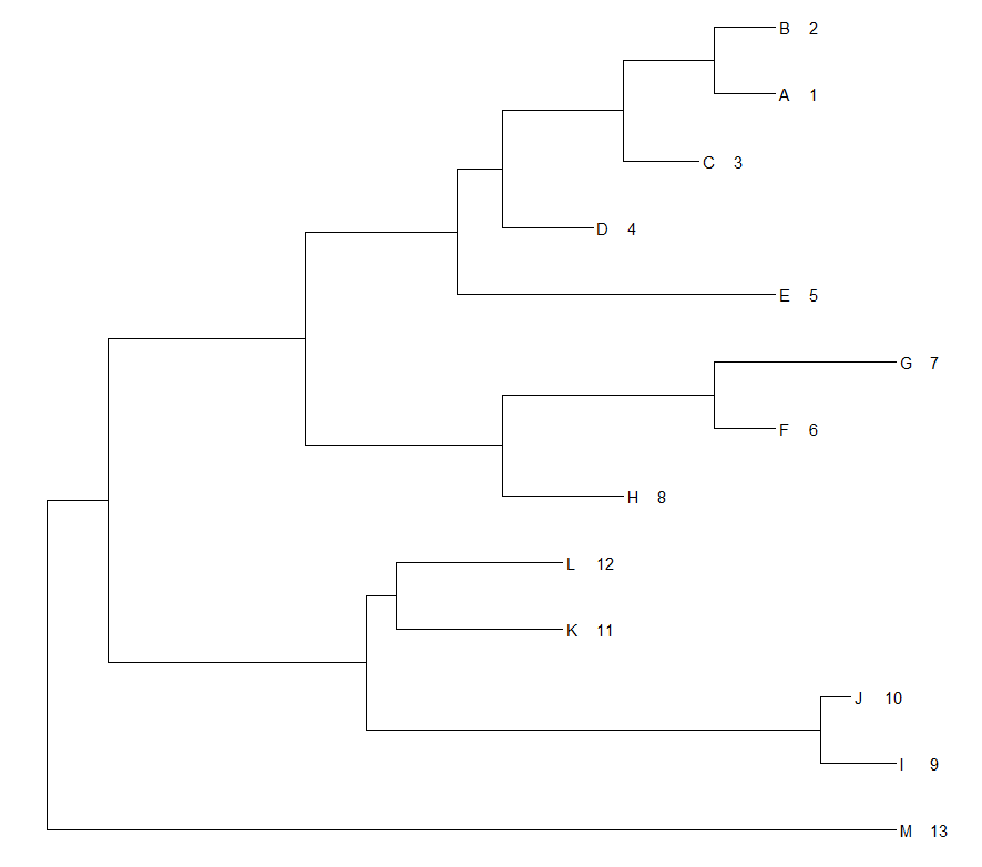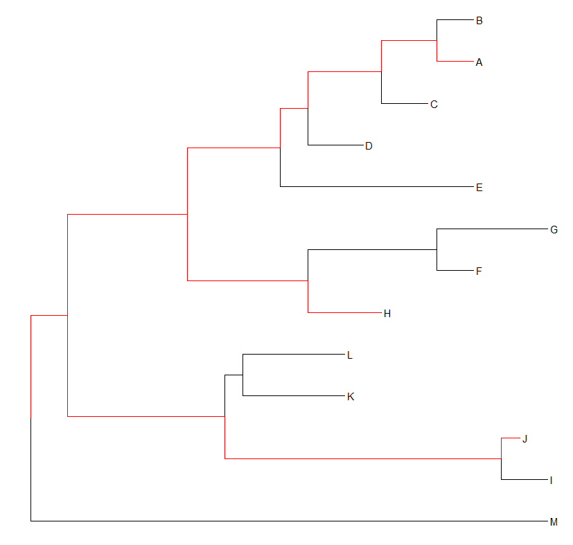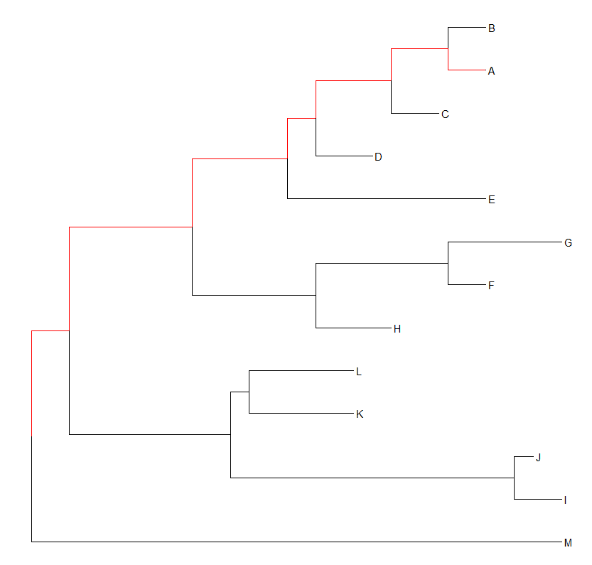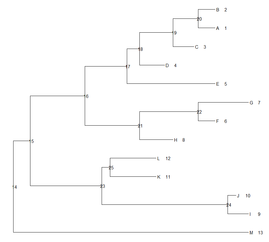 首先是获取 每个tip (样本名就是tip)对应的node number,这个node number对应的和tree$tip.label样本出现的顺序,比如A 第一个出现 A对应的就是1 B是2 这样以此下来