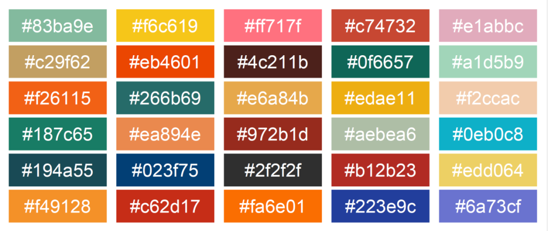 cols01<-c("#f49128","#194a55","#187c65","#f26115","#c29f62","#83ba9e")