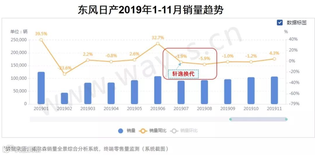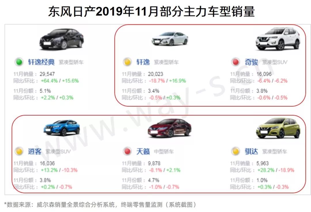 东风日产前11月累计销量达104万辆,累计销量同比增长4.7%,在日系车企中占据龙头地位。“顶梁柱”车型轩逸7月换代上市,换代后数月,影响销量明显下滑。