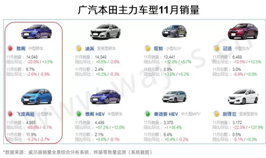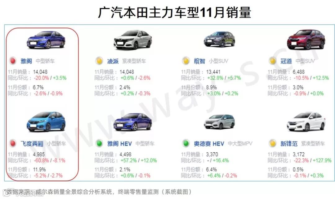 究其原因,主要受到主力车型雅阁、飞度销量同比大幅下滑影响,其中飞度由于缺少国六车型销售,销量同比已连续数月大幅下跌。