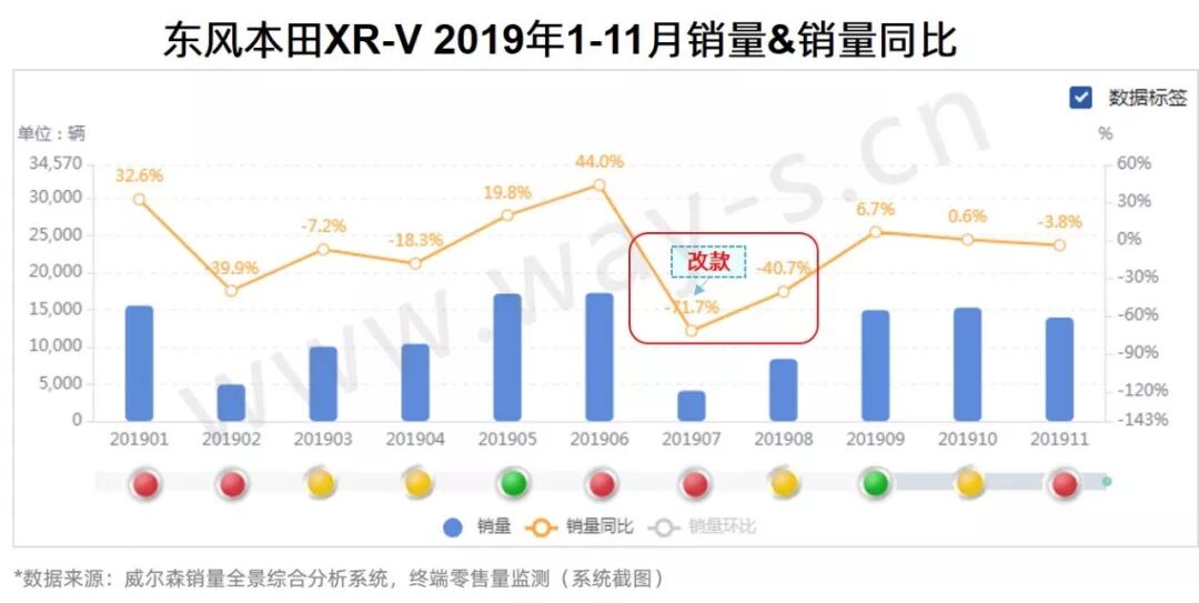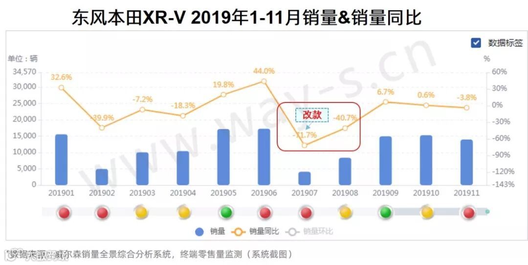 虽整体表现向好,但下半年也有多月处于黄灯预警状态。主力车型XR-V 7月改款上市,上市头两个月销量同比降幅超四成;而销量担当思域面临着换代后的轩逸和卡罗拉、德系朗逸Plus和速腾、美系以价取胜选手英朗和科鲁泽等多方强势攻击,近两月市场份额出现下降趋势。