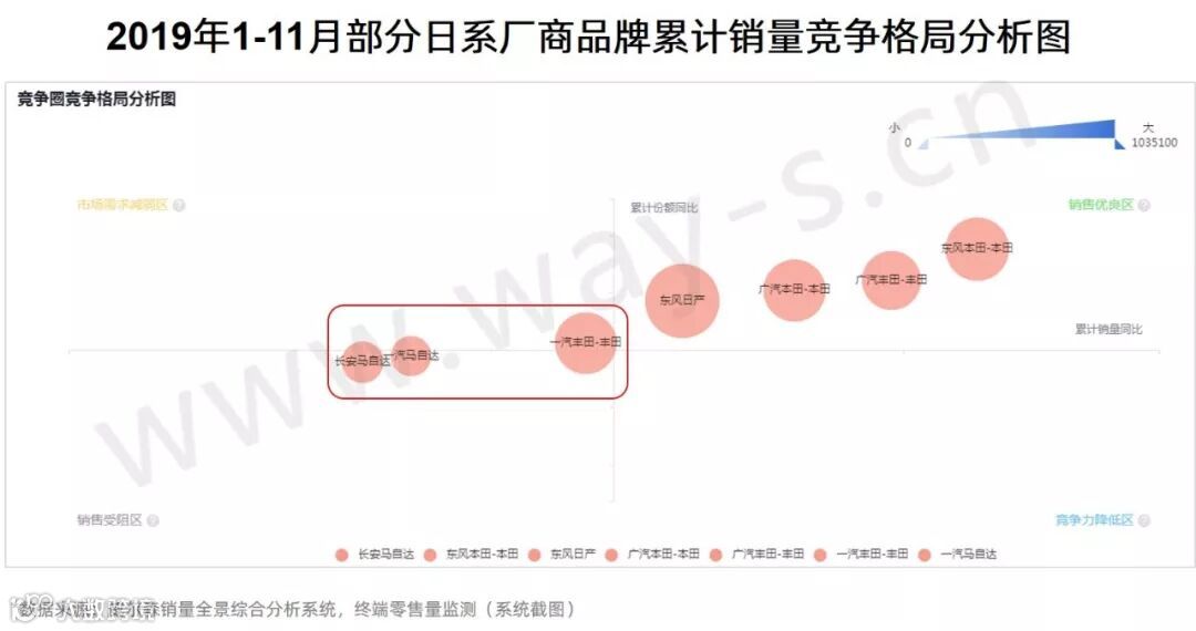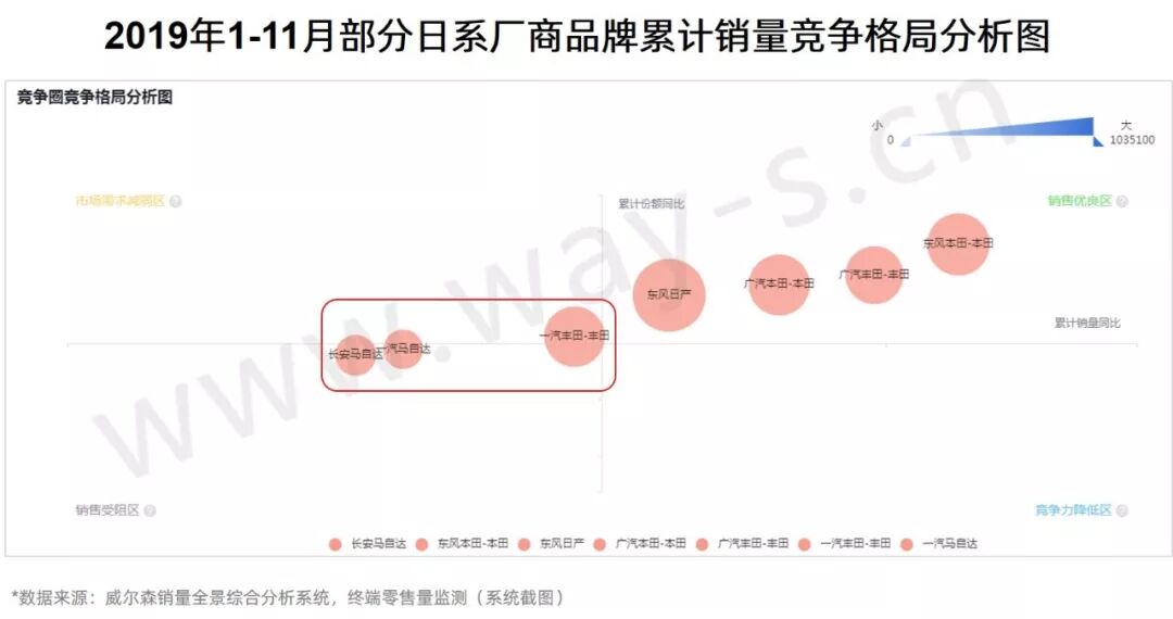 马自达品牌上半年鲜有新车上市,下半年虽然旗下三款车型有更新动作,包括9月长安马自达-马自达3昂克赛拉三厢的换代、11月一汽马自达-CX-4的改款、8月一汽马自达-马自达6 阿特兹的改款,但受新车终端优惠较少等因素影响,销量表现相对逊色。据威尔森销量全景综合分析系统,长安马自达与一汽马自达均处于销量受阻区。