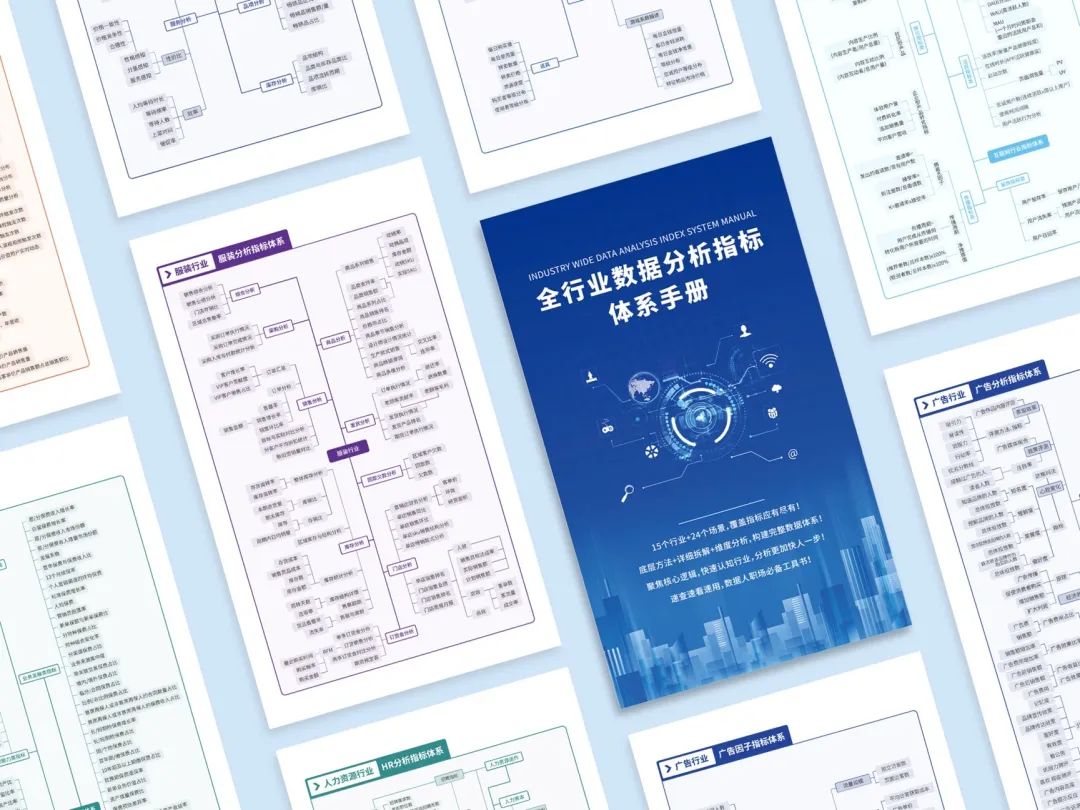 《全行业数据指标系统手册》涉及15个行业,24个场景,1000多个指标,内容之详细,质量之高,独属此一份。