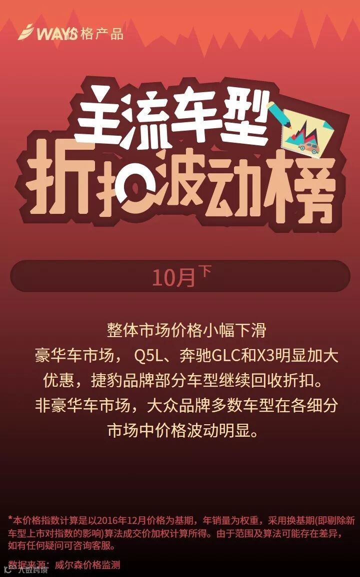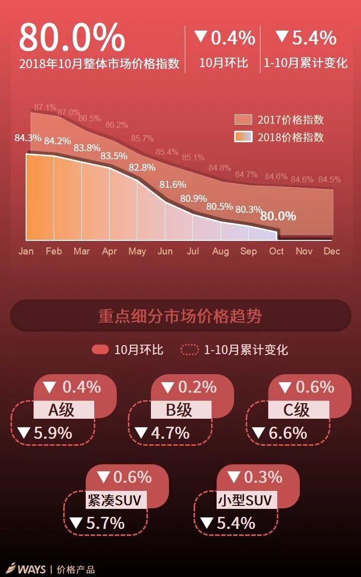 2018年10月下半月,市场竞争激烈,经销商释放优惠吸引客流,整体市场价格环比下降0.4%。