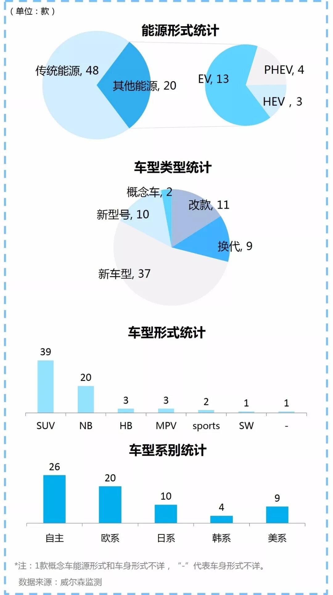 新车类型以新车型和改款为主,SUV依旧是主力,本届车展SUV车型预计将达39款。