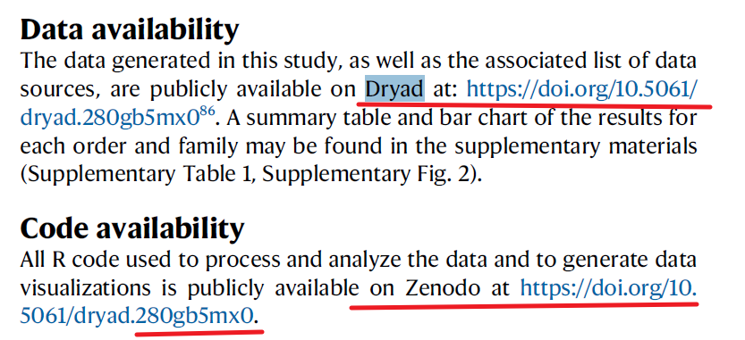 发现论文中的一个小错误:在代码获取链接的地方写的是代码存放在 zenodo这个网址,写的链接却是Dryad的链接,这个链接和数据存放链接是同一个链接。