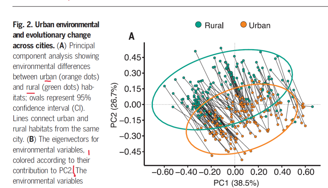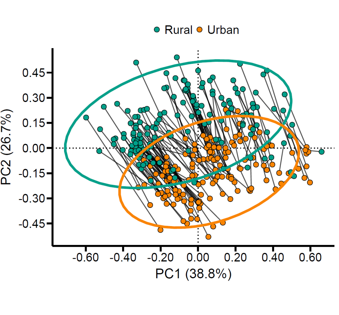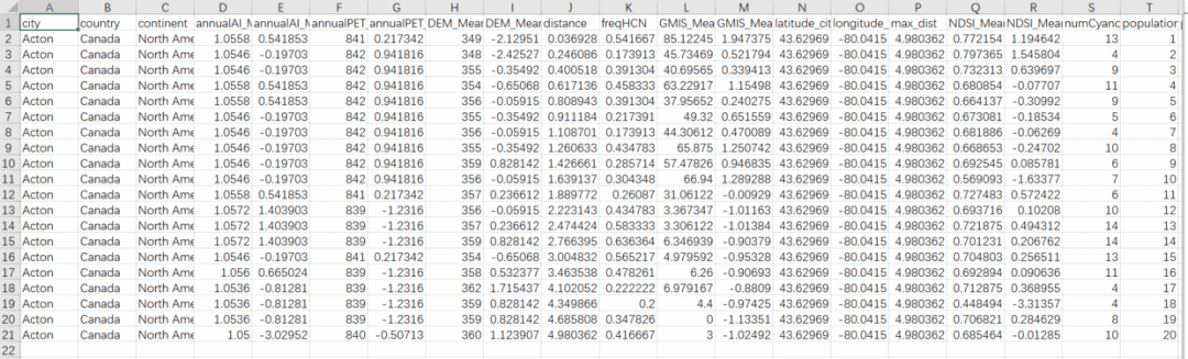这幅图展示的是城乡环境之间的差异,做的是主成分分析,首先看下他的数据集的样子