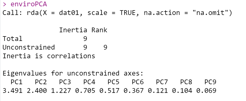 最后通过反复看 enviroAnalyses.R这个文件里的代码,通过去掉三个城市的数据集的方式得到了pca分析的输出数据