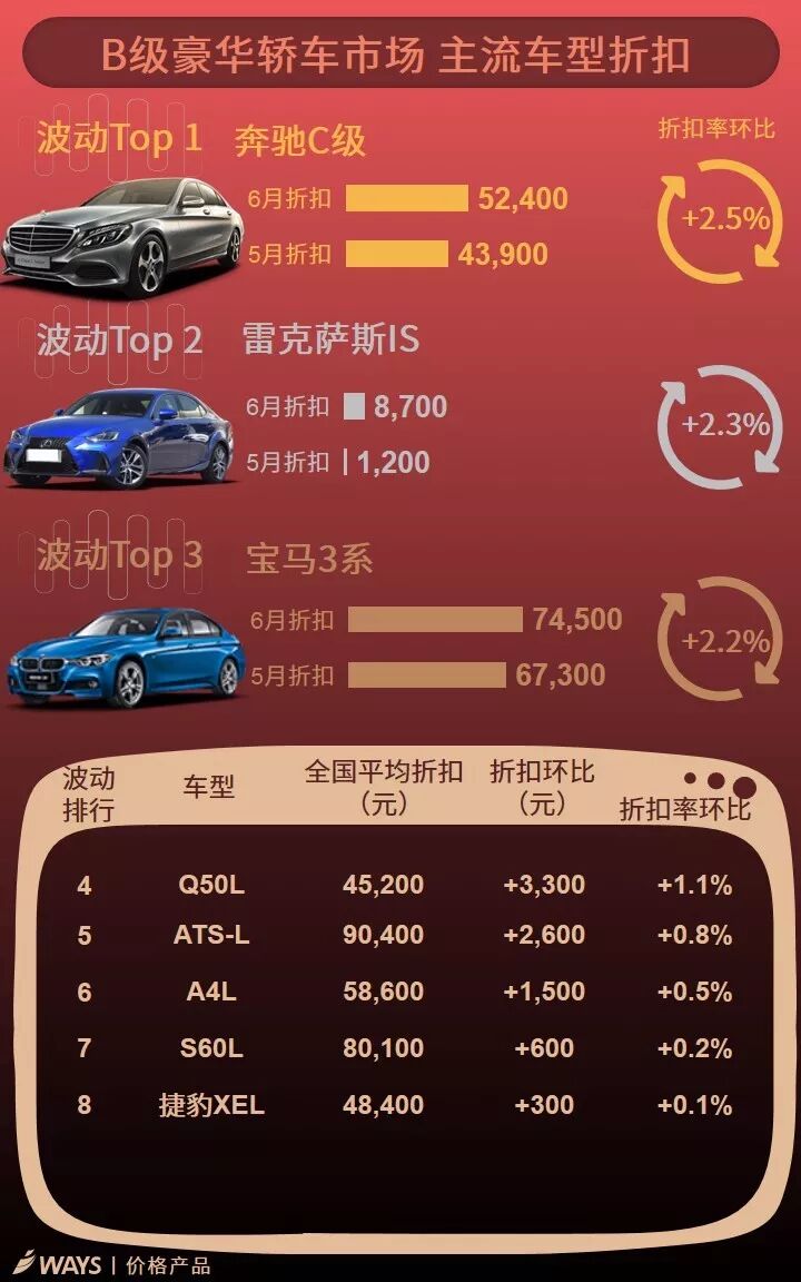 车型方面,宝马3系及5系终端折扣增幅达7,000元以上;奔驰C级、E级和GLC终端优惠增加8,500-20,600元,价格降幅达2.5-4.3%;而雷克萨斯IS和ES也有超5,000元的折让。