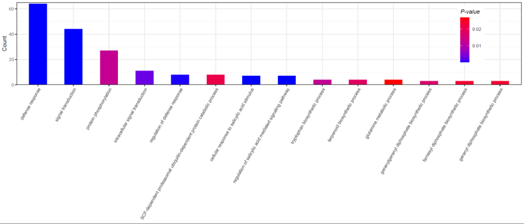 论文中组装了7个拟南芥的基因组,做了一些泛基因组相关的分析,数据和大部分代码都公开了,我们试着复现一下其中的图和一些分析过程,今天的推文复现一下论文中的figure5e 柱形图展示富集分析的结果