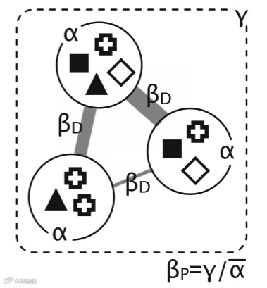 Beta多样性(β多样性),即在一个梯度上从一个生境到另一个生境所发生的种的多样性变化的速率和范围。它是研究群落之间的种多度关系。