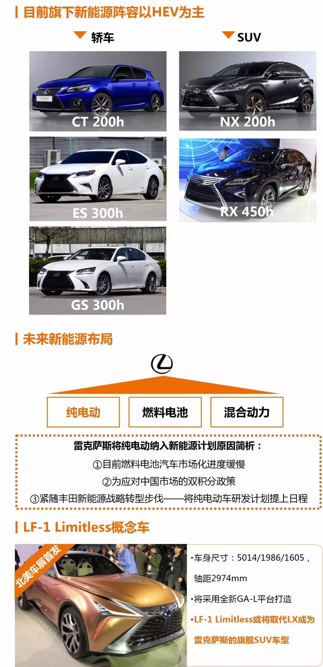 新能源汽车已是汽车行业未来发展趋势,雷克萨斯在新能源规划中曾以油电混合为主,本届车展上,雷克萨斯宣布将纯电动车纳入新能源研发计划,未来在雷克萨斯产品阵营中,纯电动车型或将取代目前油电混合车型的地位。