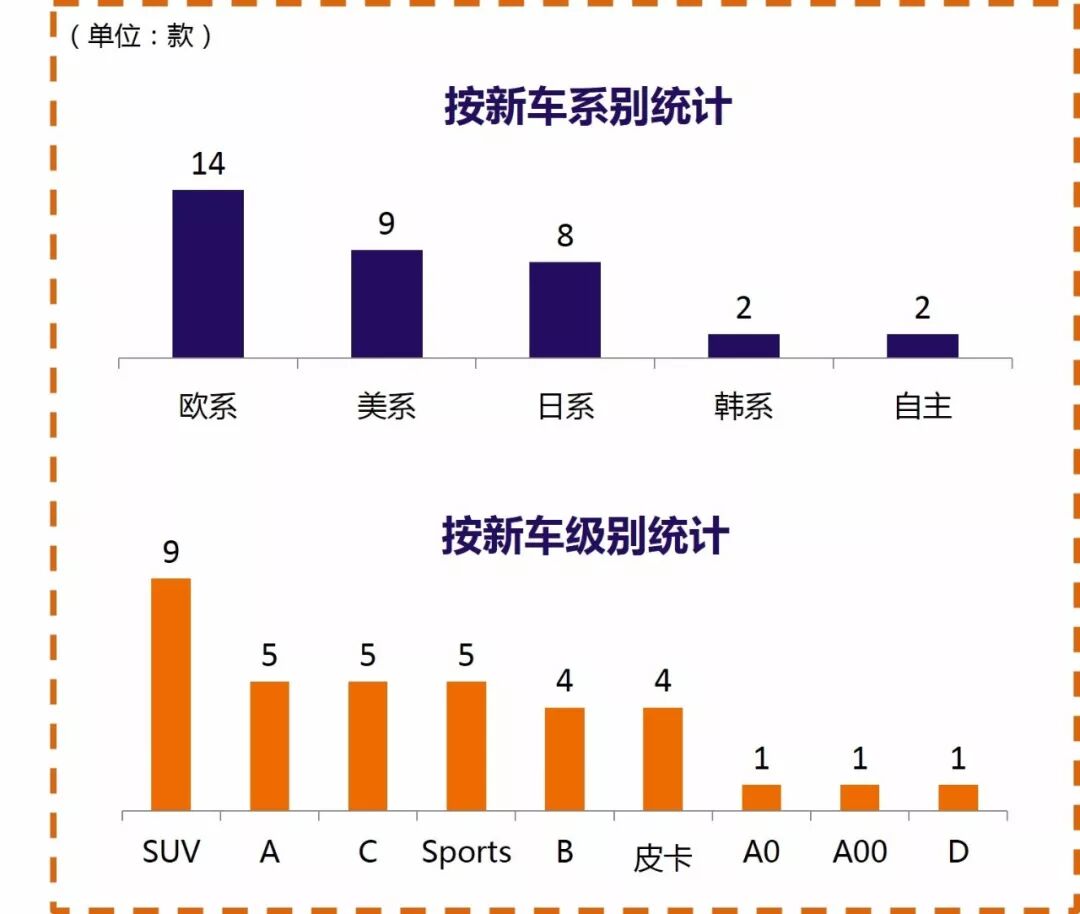 北美车展展出新车达35款,其中欧系多于美系,达14款之多,预测2018年欧美部分厂商或将迎来产品大年;SUV热度较高,参展车型达9款,其中紧凑型SUV备受青睐。