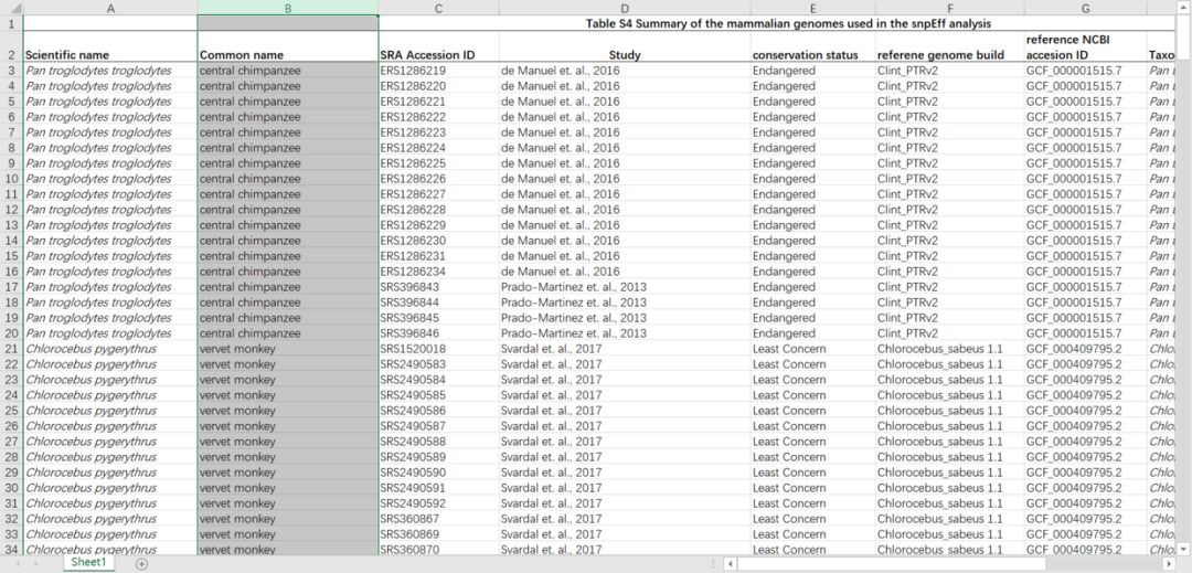 数据集用到的是TableS4,部分数据如下