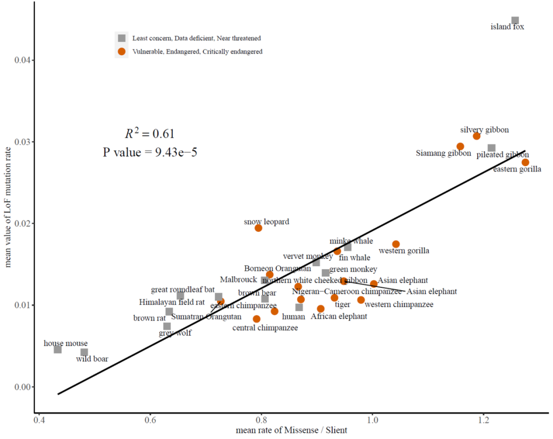 label = "atop(italic(R) ^ 2 == 0.61, 'P value = 9.43e-5')",