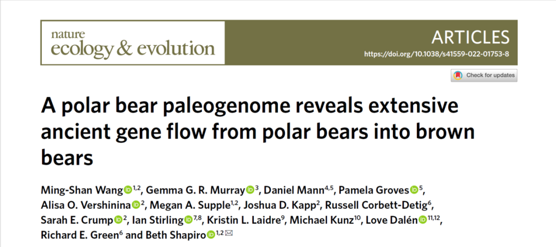 本地pdf文件A polar bear paleogenome reveals extensive ancient gene flow from polar bears into brown bears.pdf