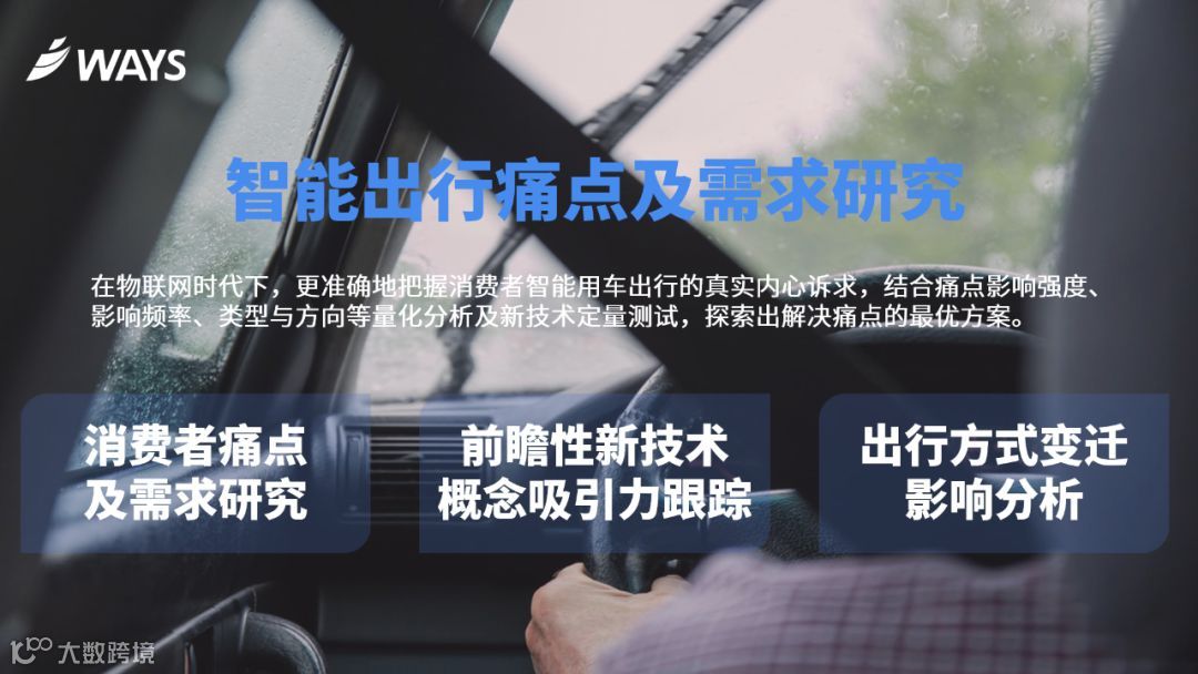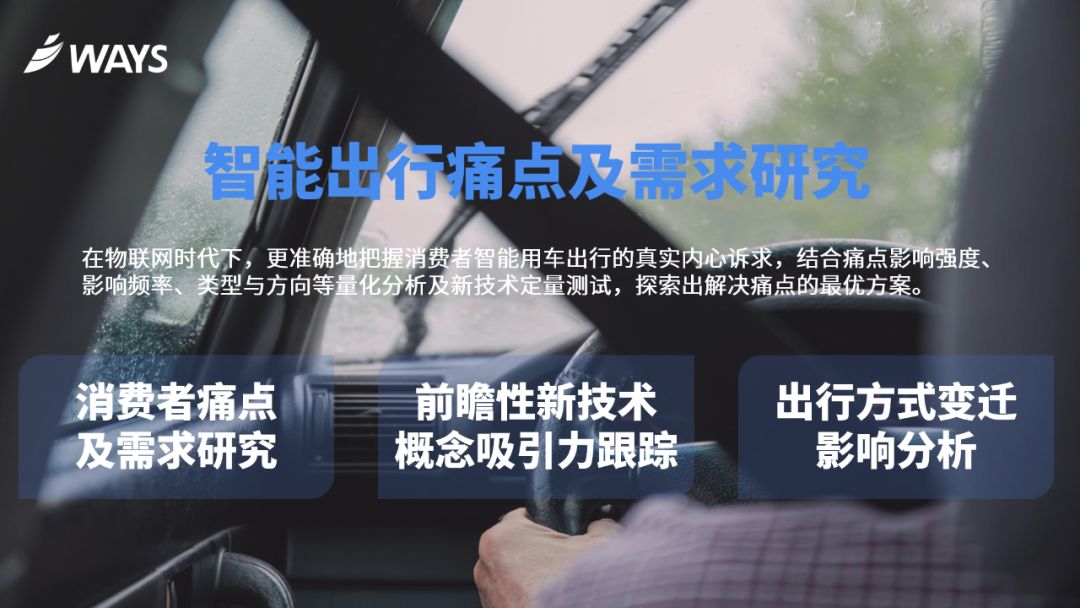 助您在物联网时代下,挖掘出消费者智能用车出行的真实内心痛点诉求,同时结合痛点影响强度、影响频率、类型与方向等量化分析及新技术定量测试,进一步探索出解决痛点的最优方案。