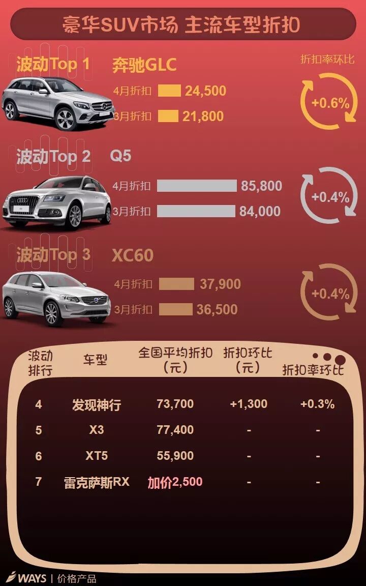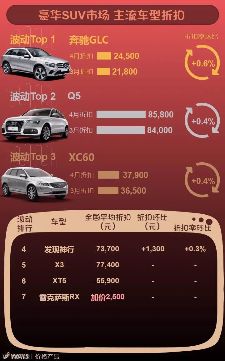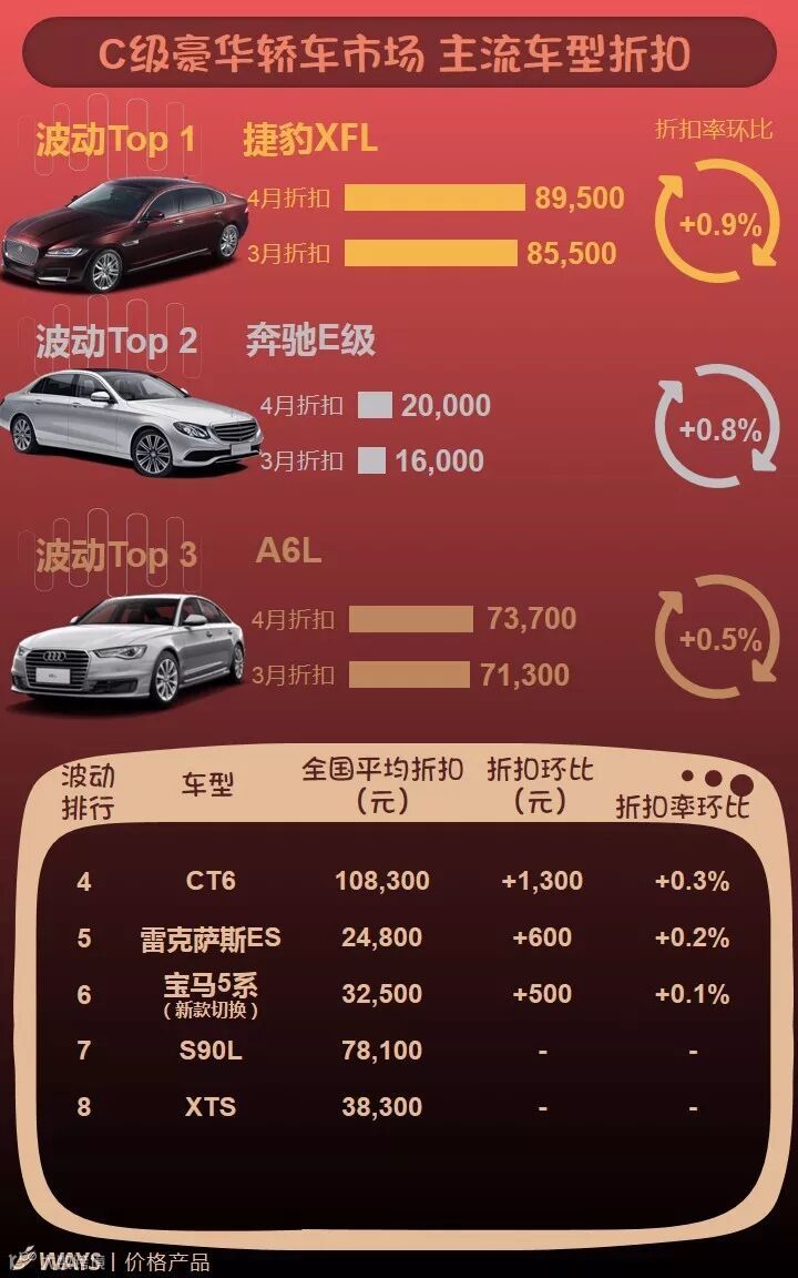 车型方面,受库存压力增大影响,奥迪旗下车型A4L、A6L和Q5价格均有不同程度下降,其中A4L价格降幅最大,终端优惠增加4100元,折扣达55300元。另外,奔驰C级终端优惠增加3100元,折扣达40500元。