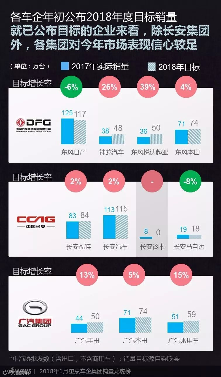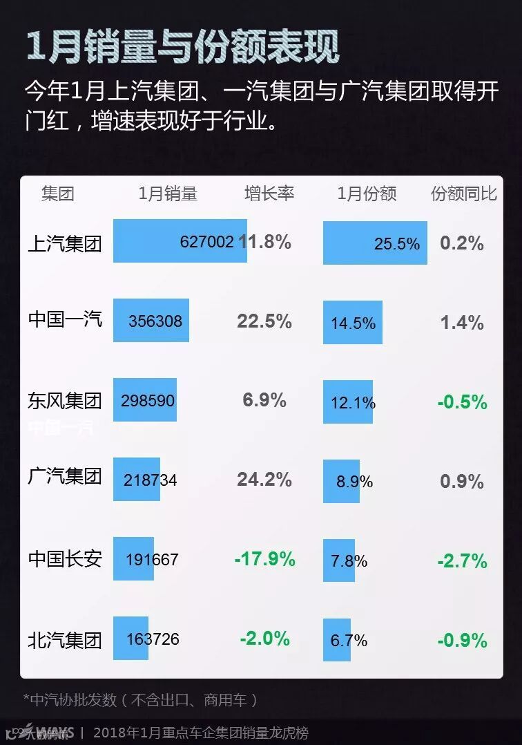 今年1月上汽集团、一汽集团与广汽集团取得开门红,增速表现好于行业。