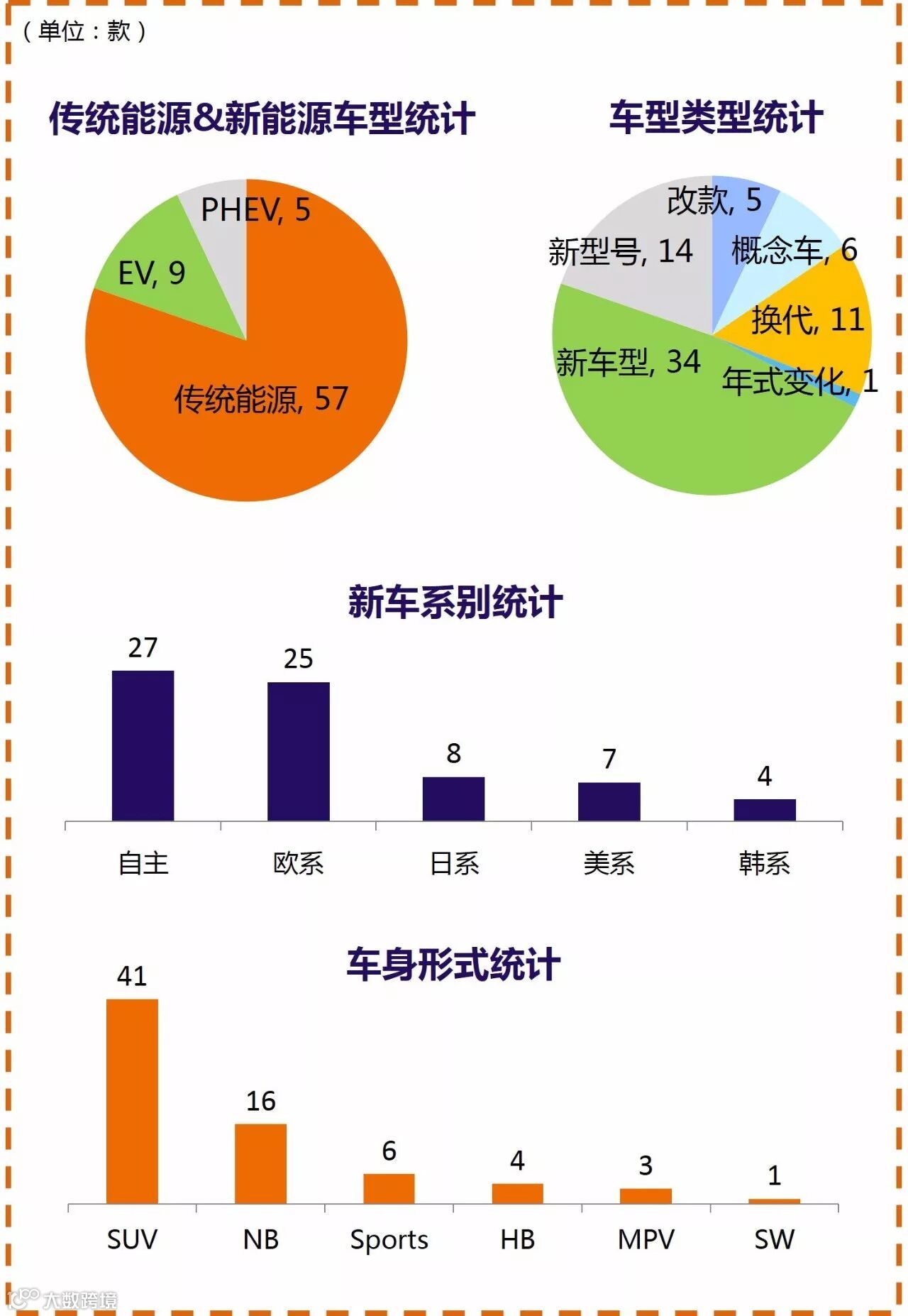 自主品牌新车展出27款,领先其它系别车型;此外,从车身形式来看,SUV车型居多,达41款。
