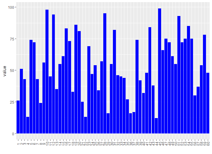p<-ggplot(df,aes(x=as.factor(id),y=value))+geom_bar(stat="identity",fill=blue)#目前还是不太清楚stat参数的作用