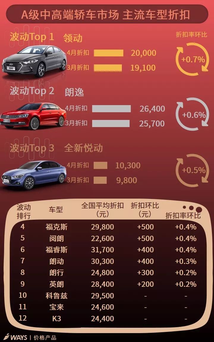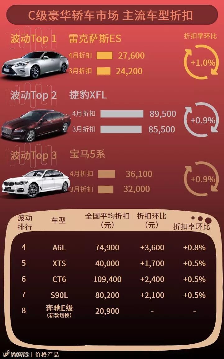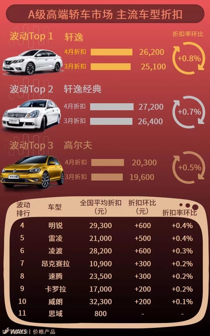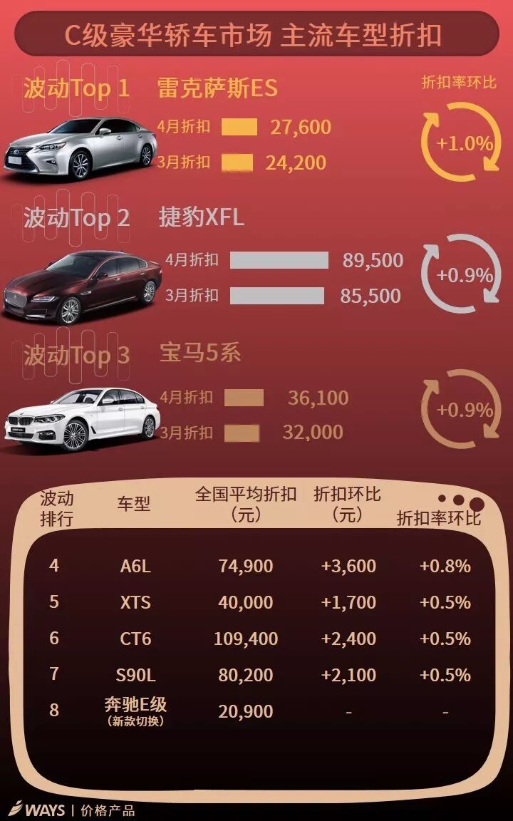 车型方面,奥迪A4L终端优惠增加5,500元,折扣达56,700元,折扣率增加1.8%;宝马3系和5系终端降价均在4,000元以上;奔驰GLC与C级也不甘示弱,终端价格降幅均达1.0%以上;ix25和XR-V等小型SUV价格降幅也在1.0%左右。
