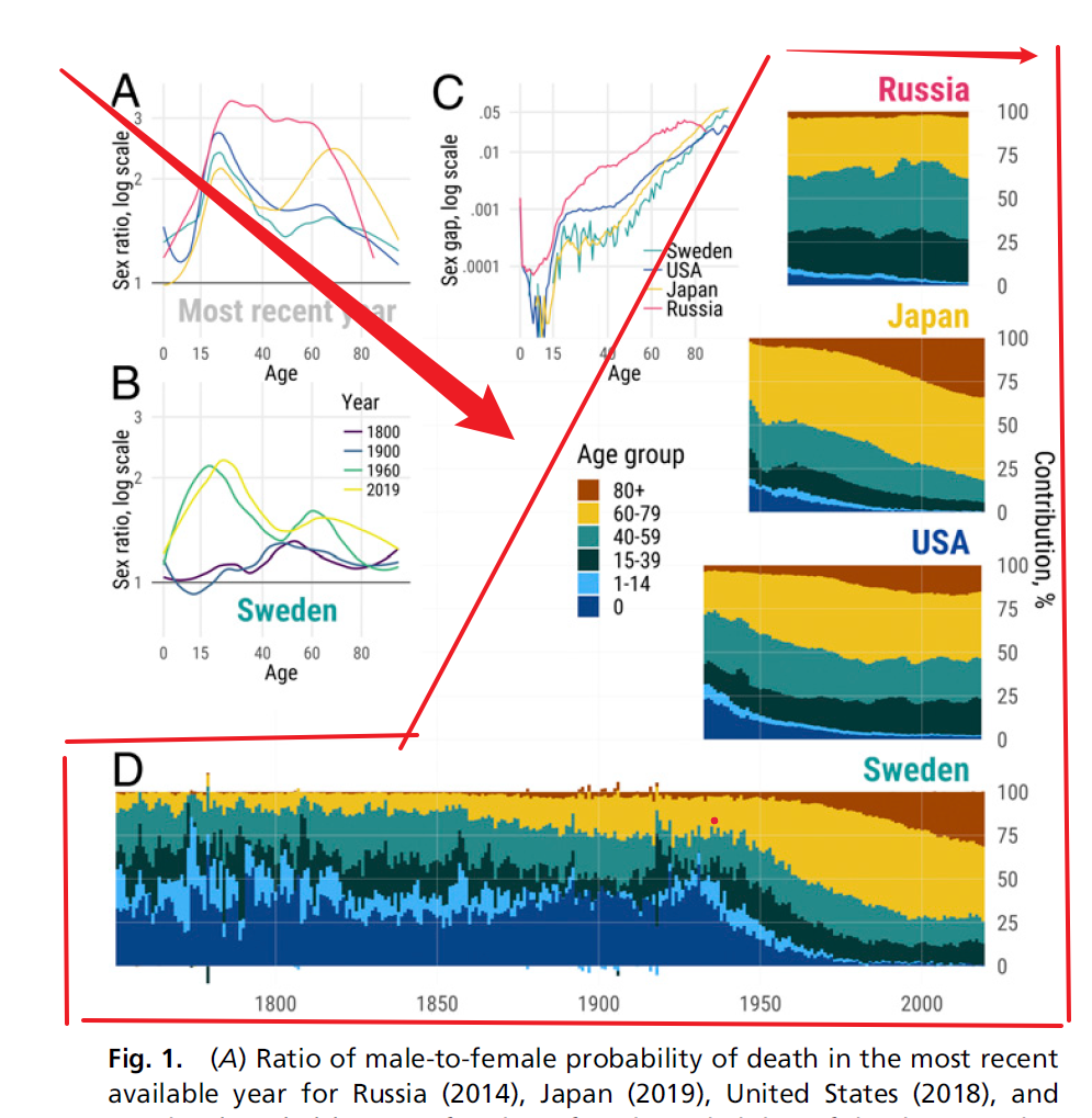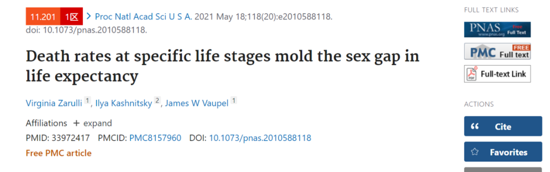 https://www.pnas.org/content/118/20/e2010588118 Death rates at specific life stages mold the sex gap in life expectancy