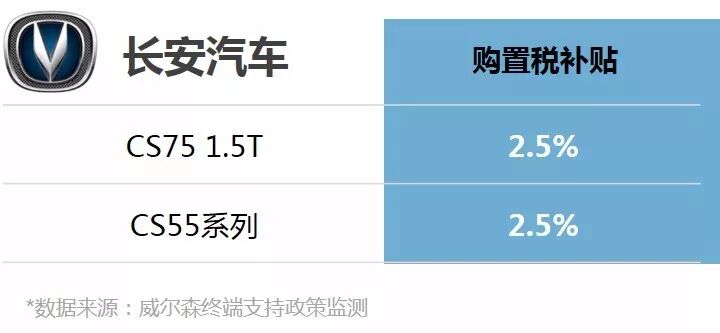 长安汽车发布了CS55及CS75 1.5T车型的购置税补贴政策,对截止2017年12月31日24时CS55系列、CS75 1.5T车型的未交车订单,且2018年3月31日前完成交车的客户给予2.5%的购置税补贴。