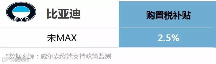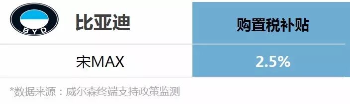 比亚迪下发《关于2018年1月1日至3月31日宋MAX购置税补贴政策的通知》,对于2017年12月31日前在经销商处已下宋MAX订单未提车的客户,且在2018年1月1日至3月31日期间实现交车的客户给予2.5%购置税补贴。