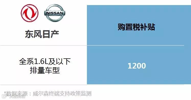 东风日产2018年1月1日-2月15日新增新春购置税补贴,对1.6L及以下排量的车型交车,给予每台1200元的补贴。根据威尔森监测,东风日产2017年1.6L及以下排量汽车销量占总销量的57.9%,可见其小排量车型贡献度之大。