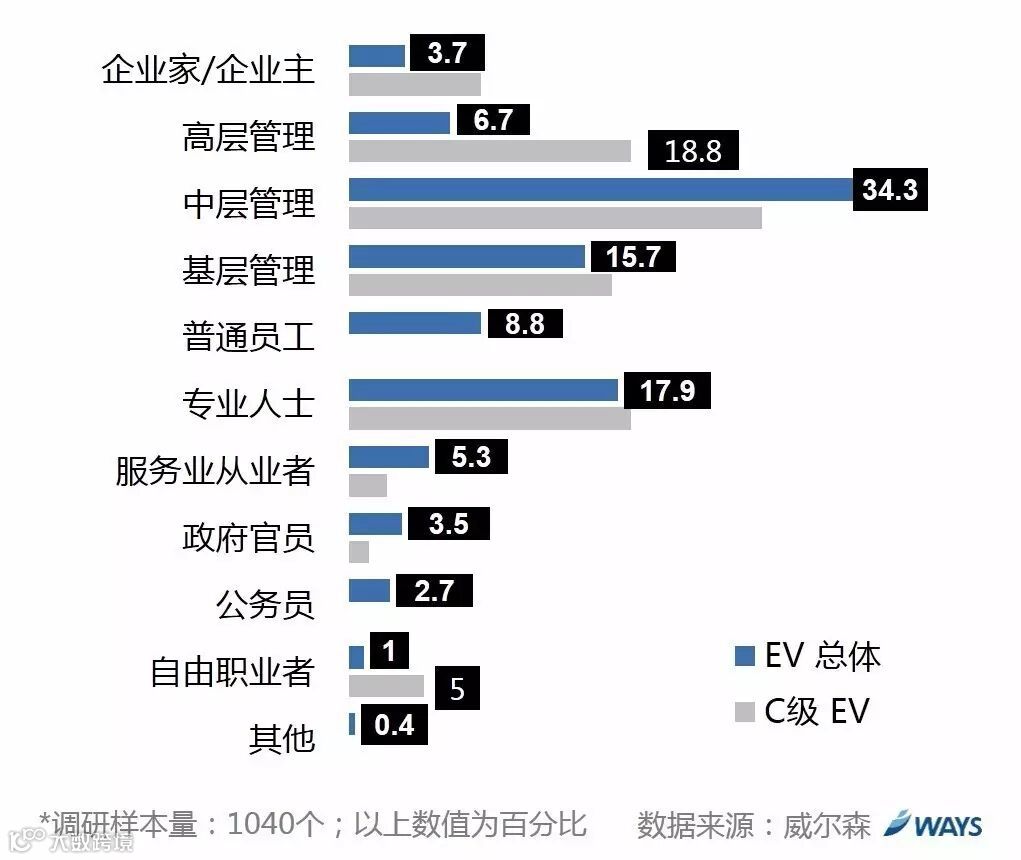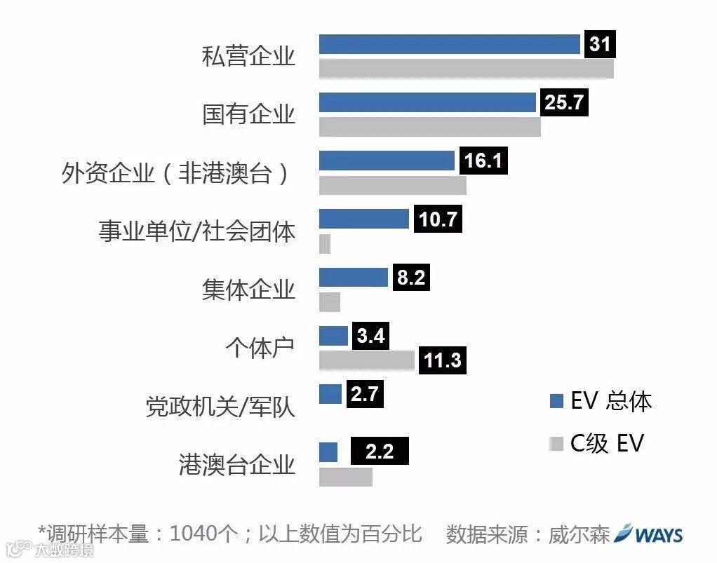 放眼BEV市场,我们发现,BEV车主从事职业以中层管理、专业人士、基层管理为主,较多分布在金融保险、教育、房地产业、生产制造业及IT业,所处企业类型以国内企业为主。