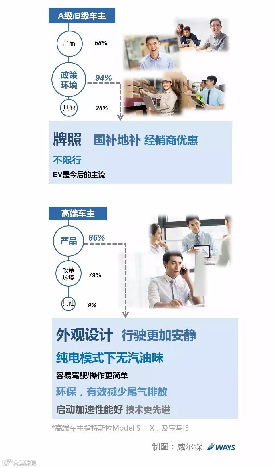从需求端看,尽管目前仍是政策型市场,新能源汽车对A、B级车主及高端车主的吸引点存在明显差异: