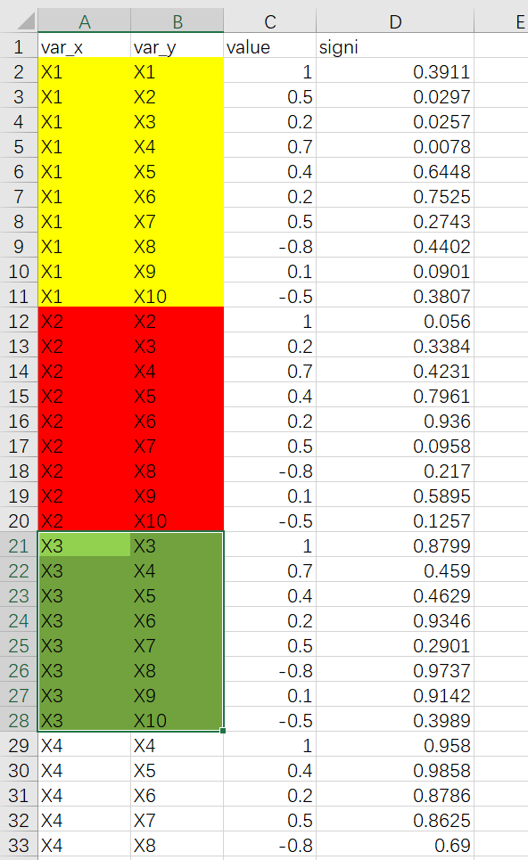 前面的变量需要注意的是,因为只画上三角,所以准备数据的时候是 :