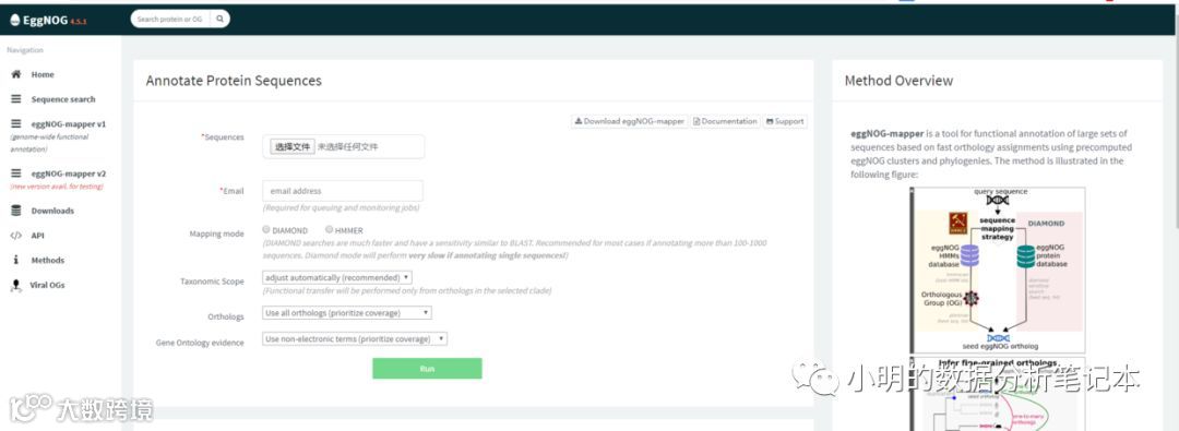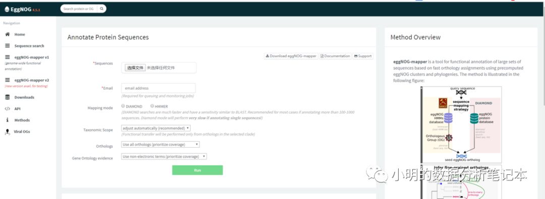 同时这个软件还有一个在线版 http://eggnogdb.embl.de/#/app/emapper