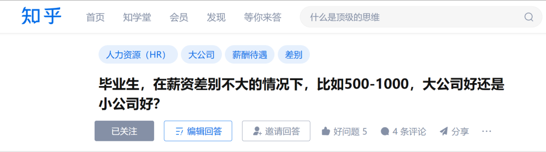最近在知乎上看到一个很有意思的问题:毕业生,在薪资差别不大的情况下,比如500-1000,大公司好还是小公司好?