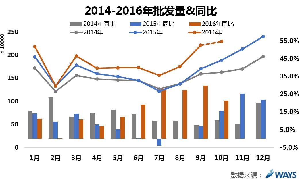 可以预见,批发量的高增长会延续到今年年底,今年厂商的销量目标完成情况将会好于去年。
