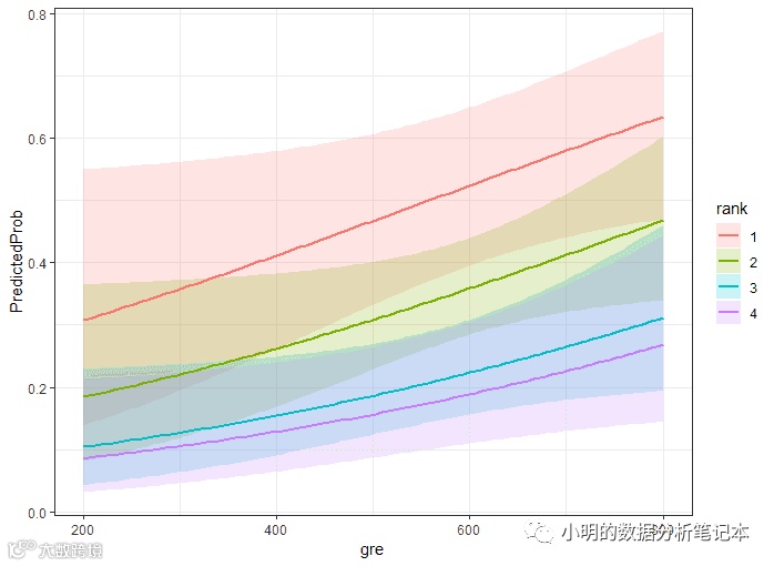 newdata2<-with(mydata,data.frame(gre=rep(seq(from=200,to=800,length.out=100)),